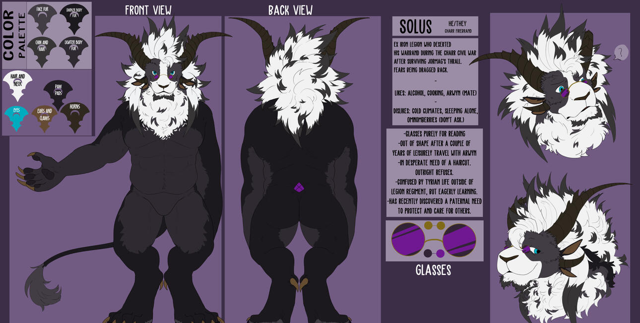 This price will get you a simple ref sheet with a character's back and front view, 2 expressions and relevant info (Text and color palette), along with a closeup on a detail of your choice. (It can be glasses, earrings, a tattoo, etc.)